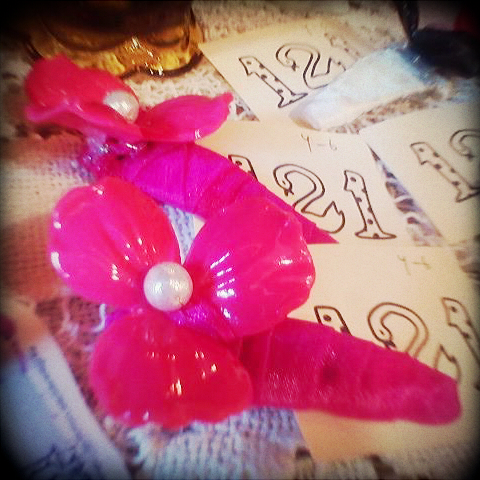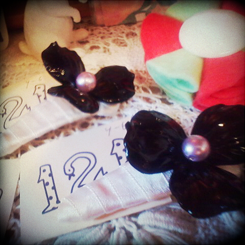 ・お花ぱっちんどめ(ピンク×白パール/黒×ラベンダーパール)