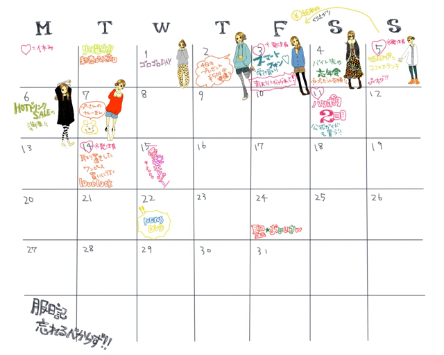 こんな感じに予定とか日記かいて月末にさらしたらかわいいんじゃない?っていう試み。